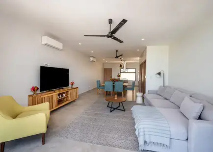 Experience the simple and serene lifestyle at our fully furnished two-bedroom retreat. This unit boasts two master baths, a well-equipped kitchen, and smart TVs in every room. Relax on the beautiful deck with scenic views of the pool and nearby mountains. Just a short walk to Tamarindo beach.